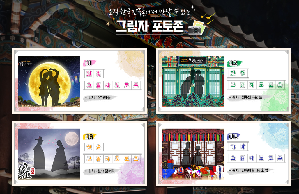 낮과는 또다른 분위기의 한국민속촌. 야간개장 포토존에서 인생샷도 남겨보세요!
