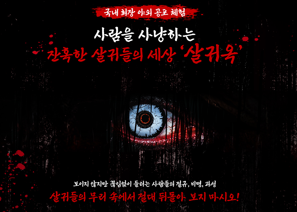 귀굴 공포체험은 앞서 말씀드린 것과 같이 살귀옥, 혈안식귀 두 가지 코스로 나뉘어져 있고 각각의 키오스크에서 티켓을 구매하면 됩니다! 혈안식귀과 살귀옥은 스토리도 다르고 체험시간도 달라요. 혈안식귀가 실내 짧은 버전이라면, 살귀옥은 야외 긴 버전 공포체험이에요.